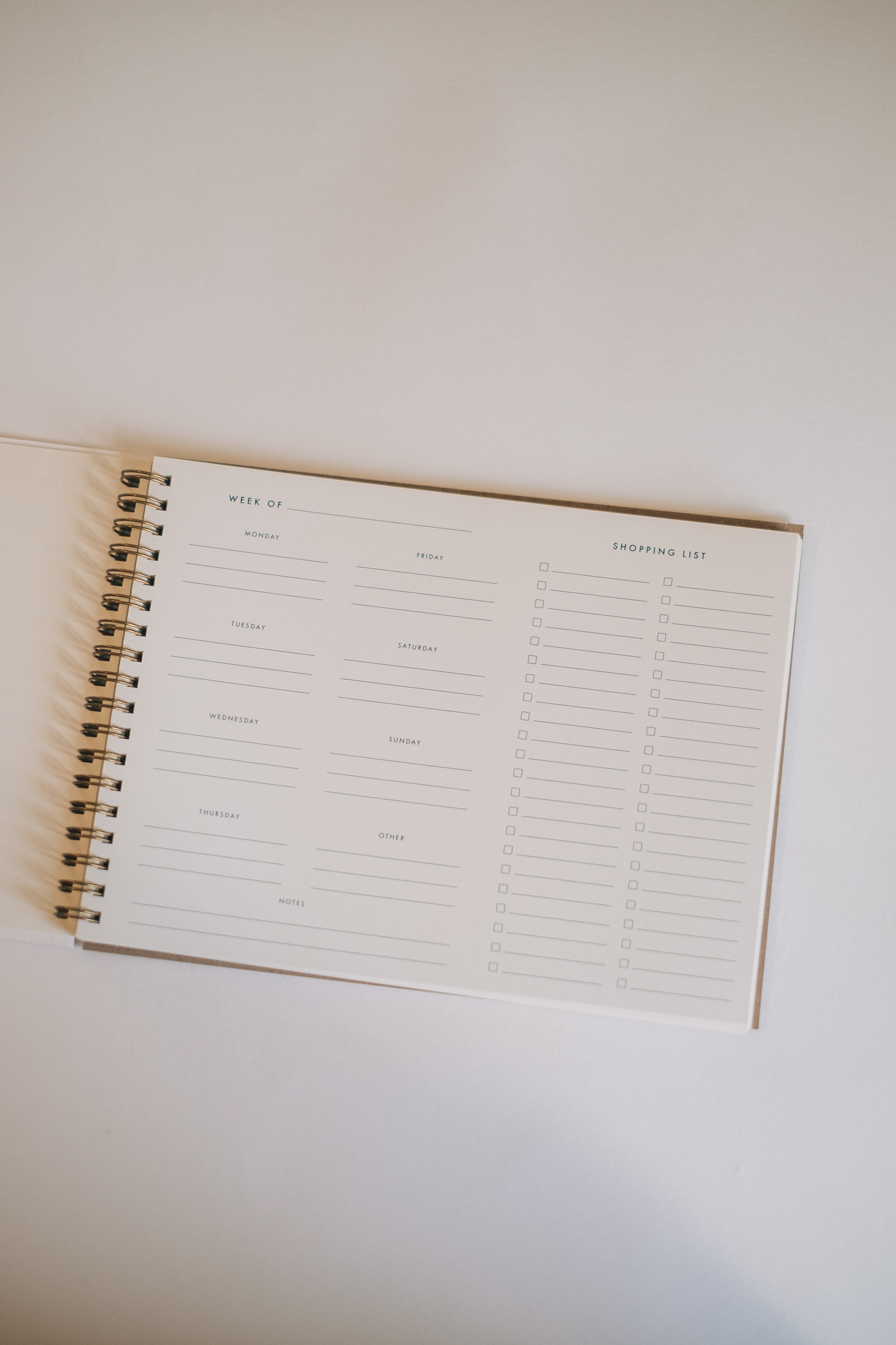Super simple with enough room for 3 meals a day plus snacks. This simple and elegant design makes planning and grocery shopping easy with a tear-off shopping list on each spread to make meal planning even easier.