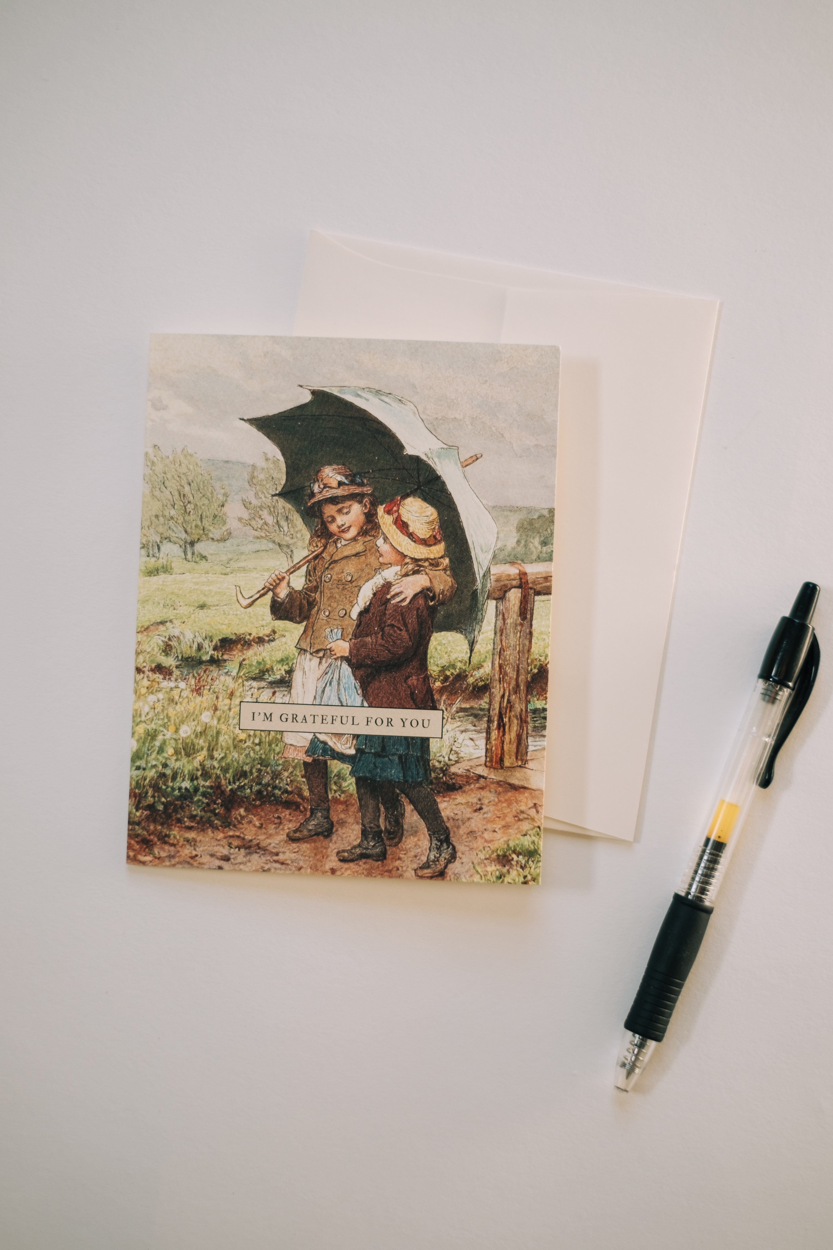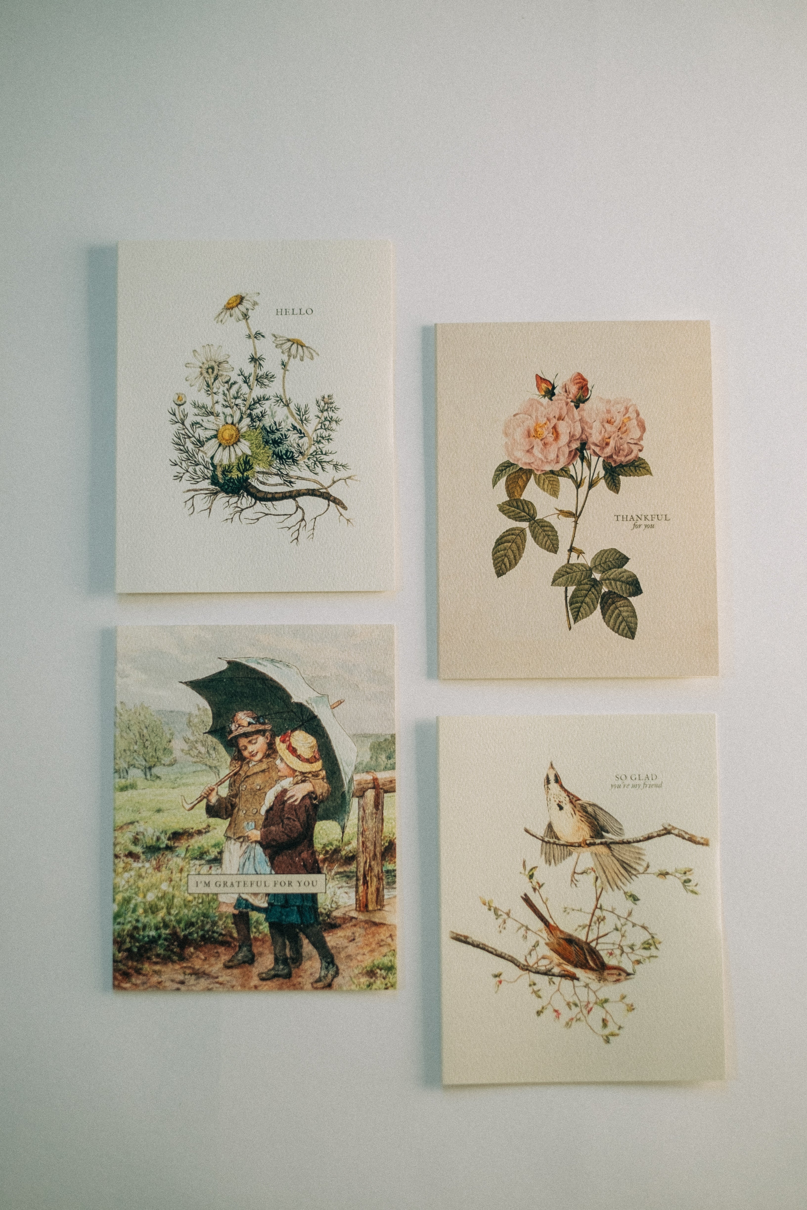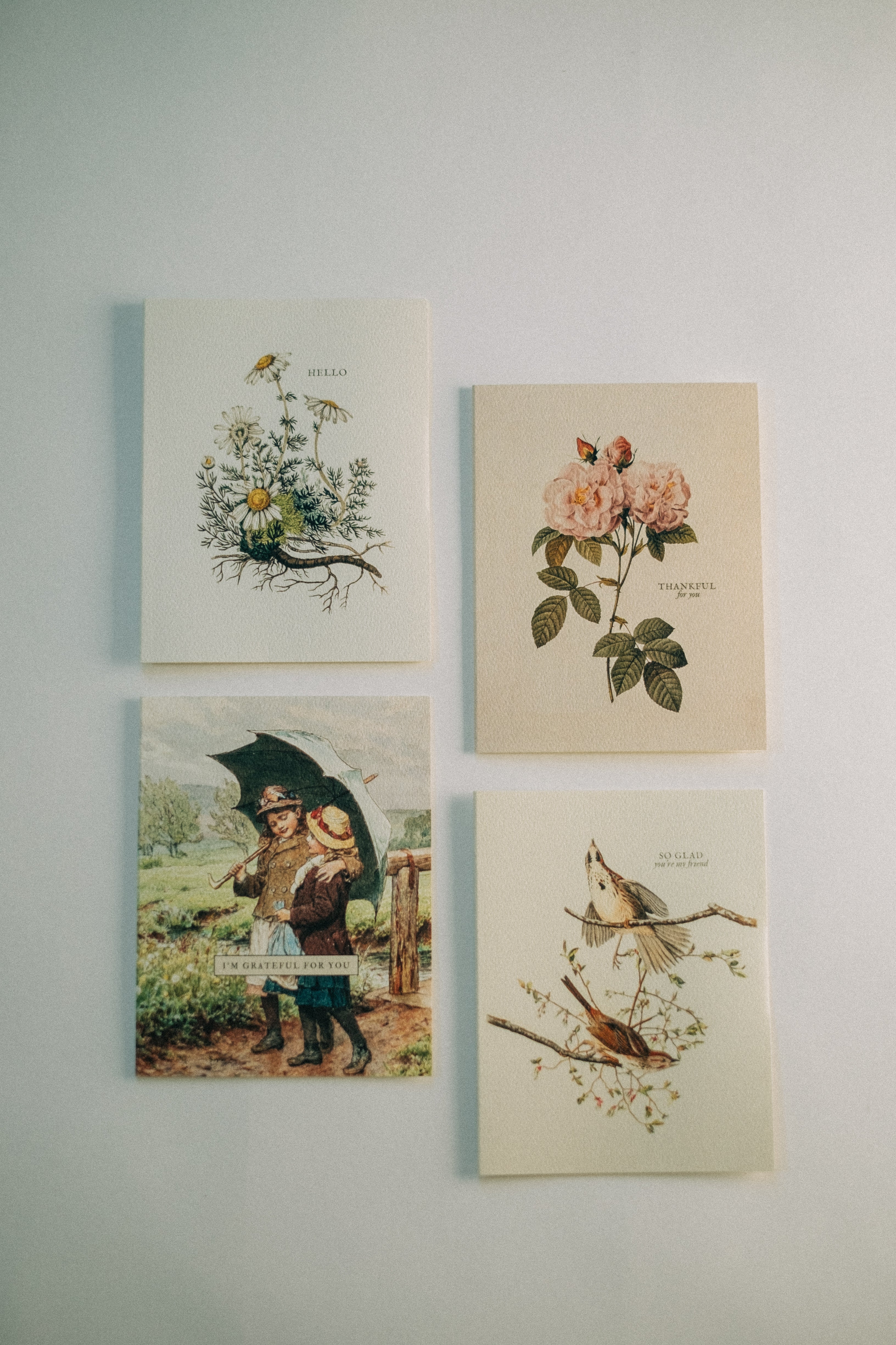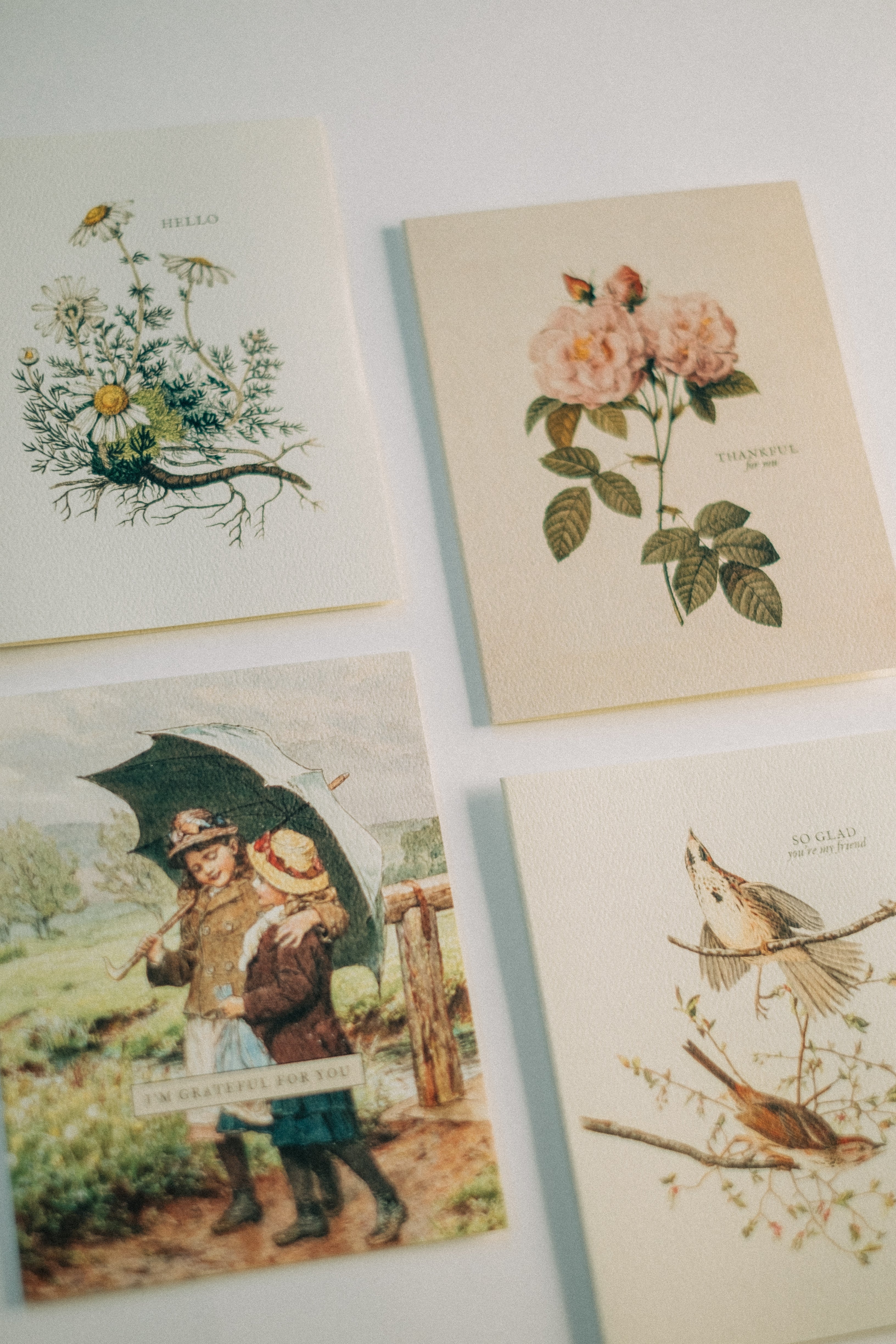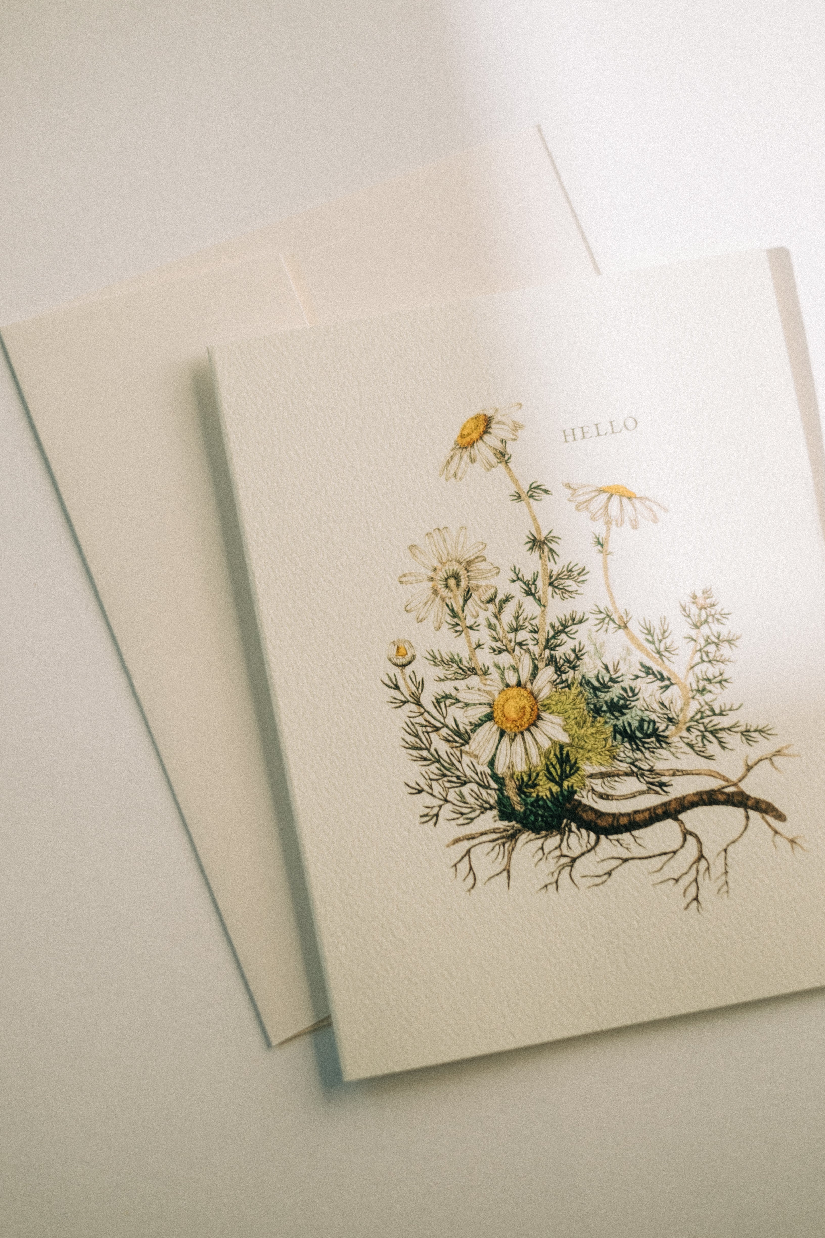 Perfect for handwritten notes, each card is printed on high-quality cream-colored textured card stock and comes with a matching envelope.