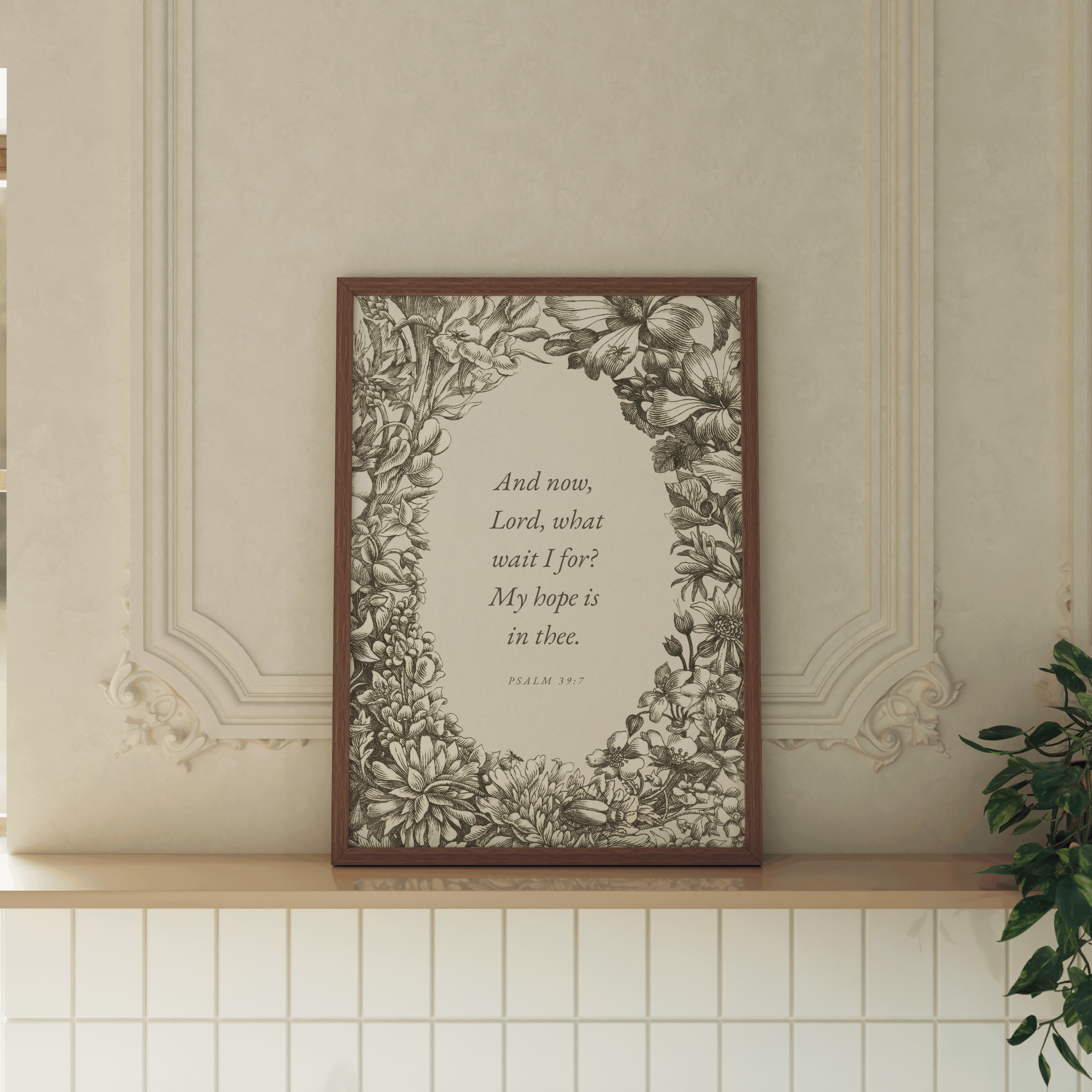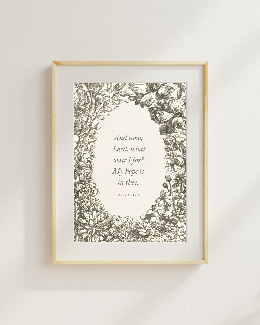 This print features a gorgeous vintage illustration paired with the words of Psalm 39:7 -