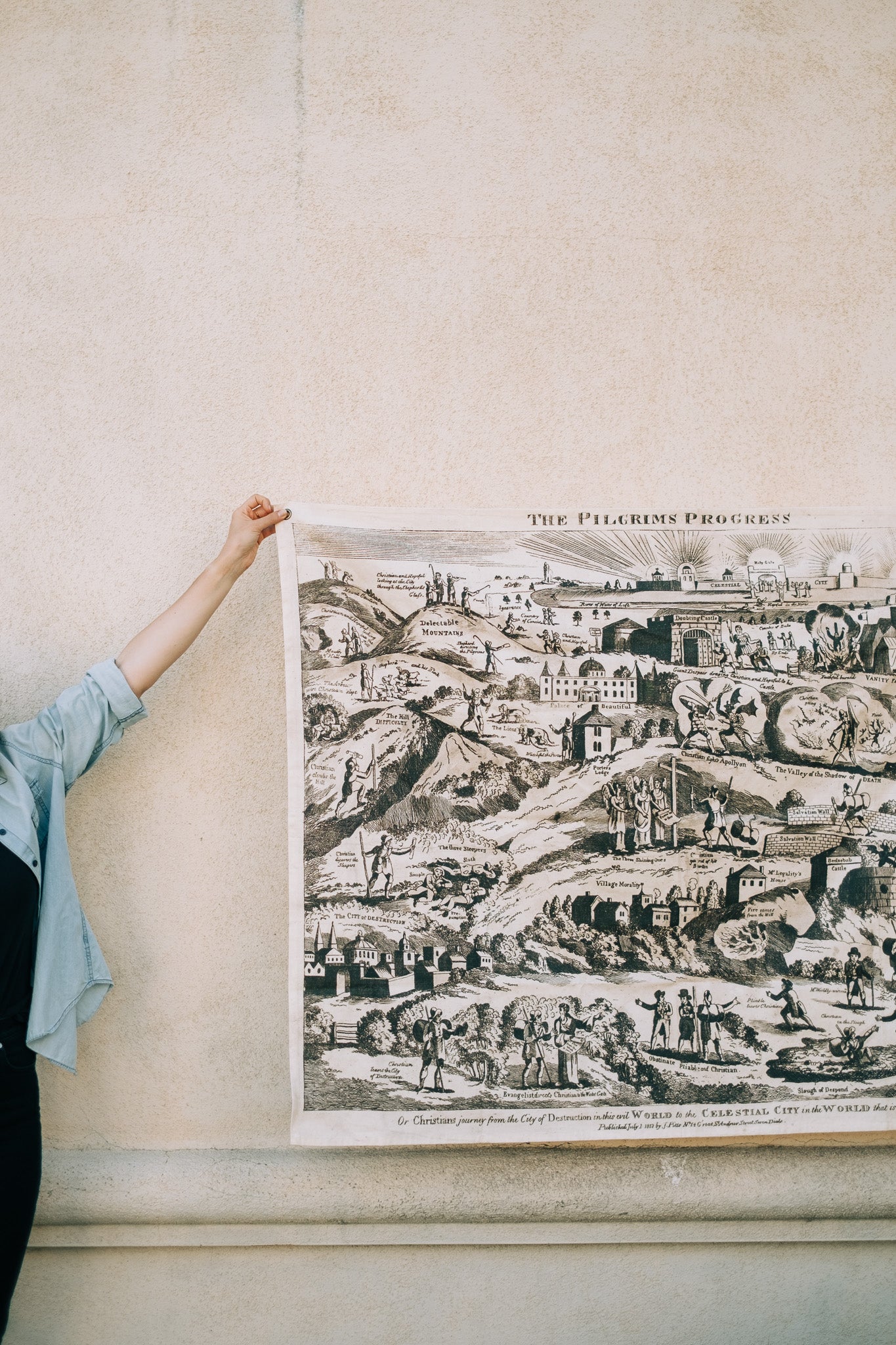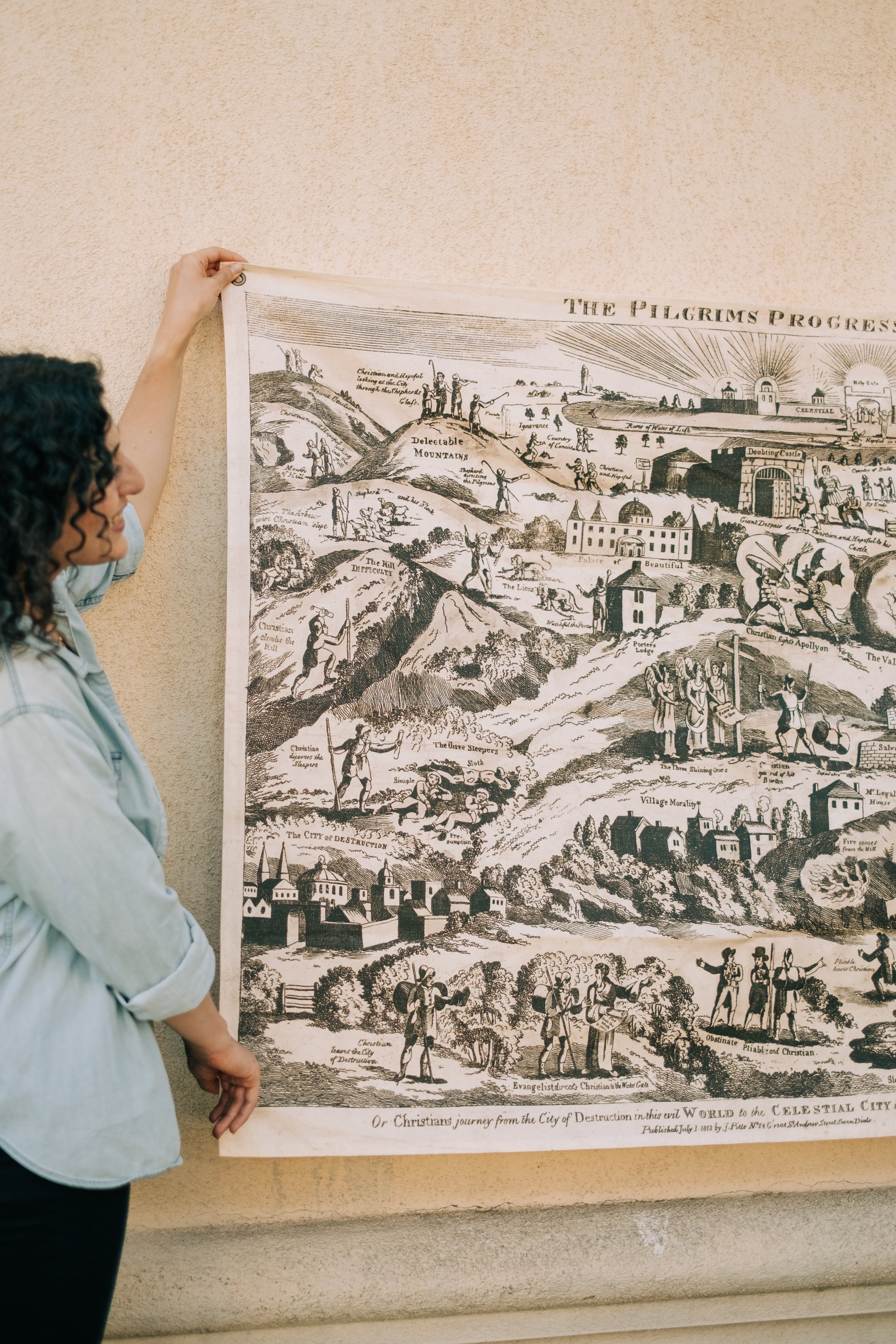 Bring a lovely statement art piece into your home with the Pilgrim Tapestry, creating an instant focal point of beauty. This Pilgrims Progress map is a reprint of the original vintage map.