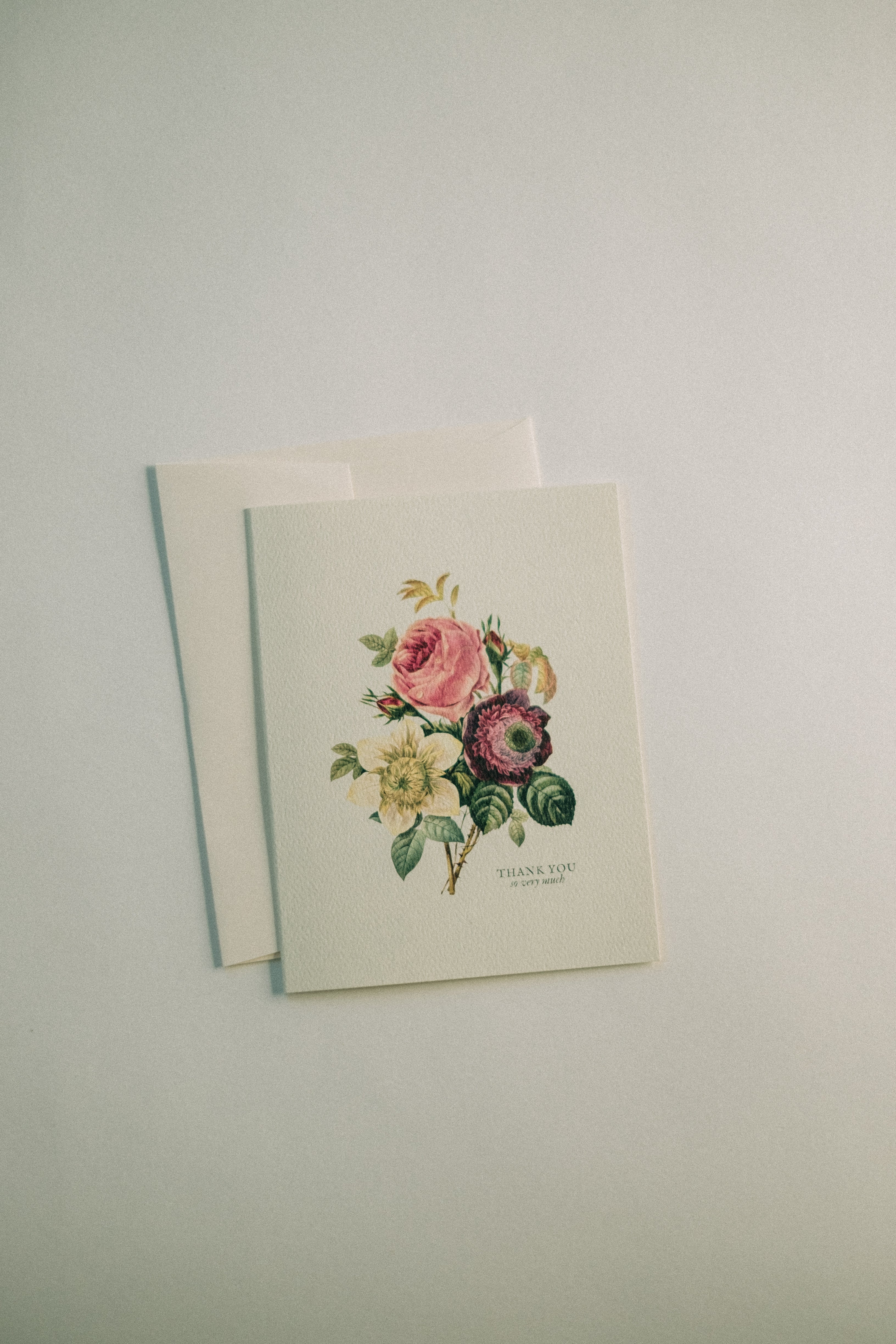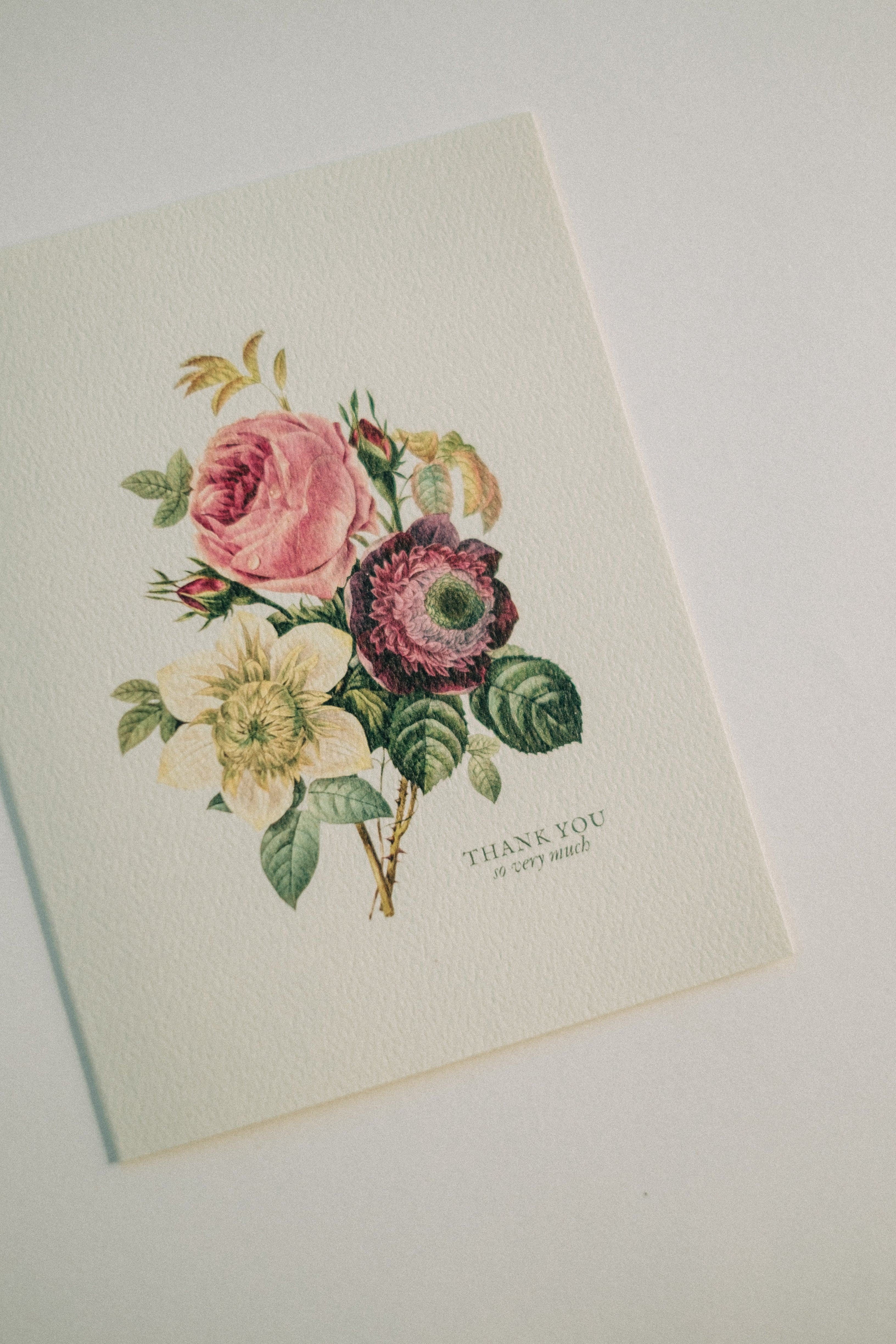 A heartfelt thank you message combined with beautiful vintage florals make a stunning card for offering your gratefulness