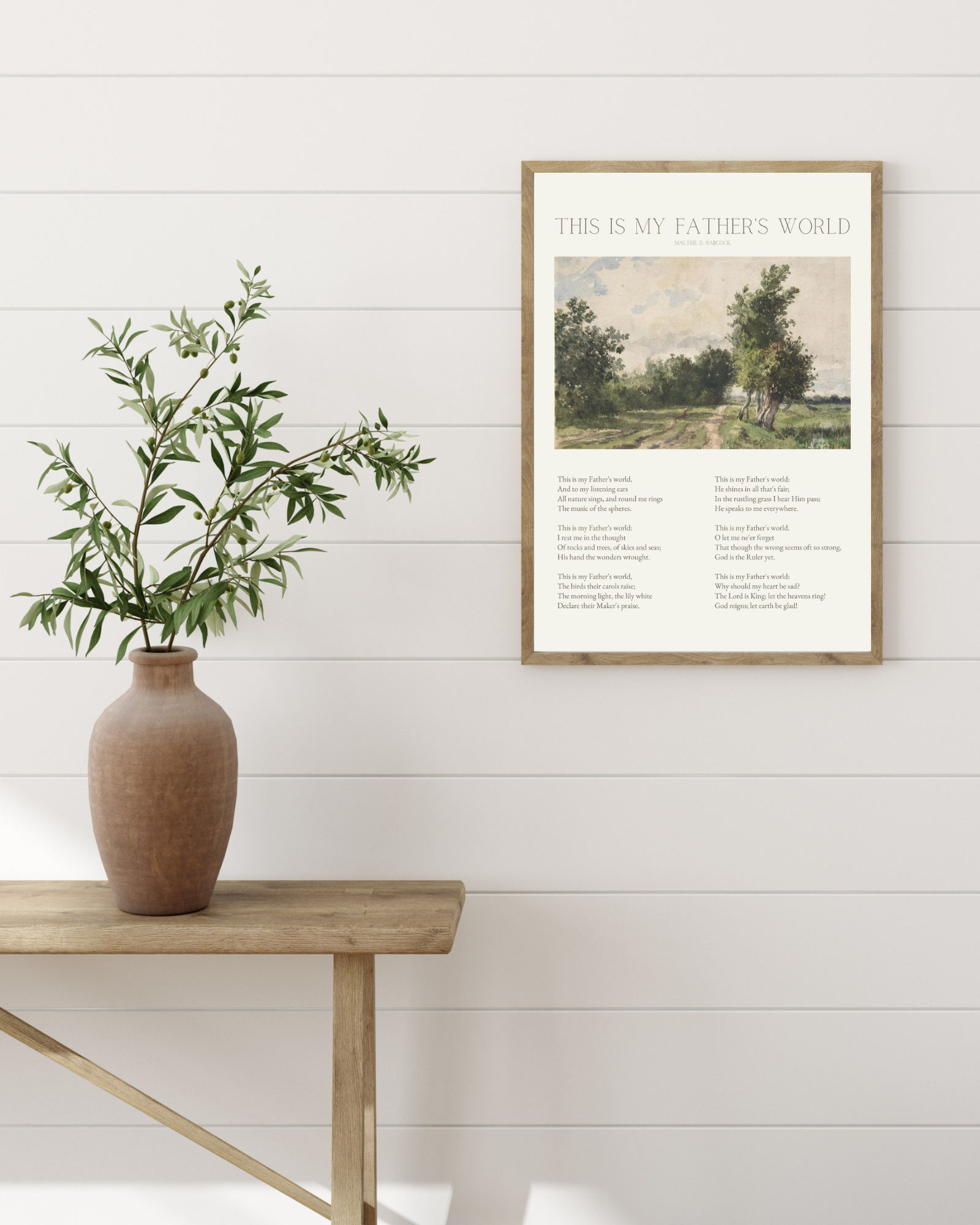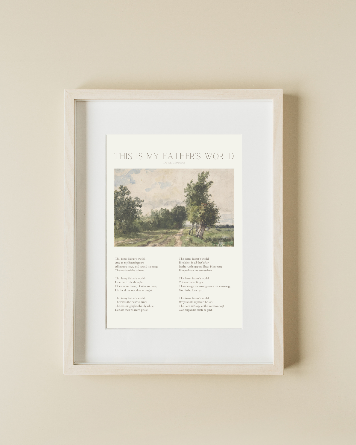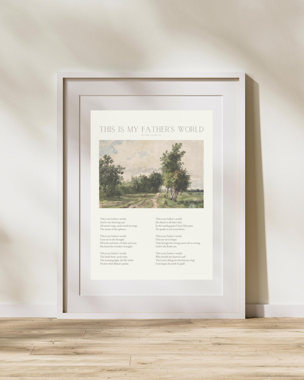 The lovely old hymn, "This is My Father's World," is combined with a vintage painting to create a timeless piece of art for you home.